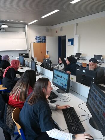 Die Teams arbeiten am Computer und recherchieren im Internet, schauen und hören Ton- und Videodateien. Die Verknüpfung von Medien mit französischen Kenntnissen begeistert die Schüler*innen, sodass sie motiviert ihr Wissen über Frankreich und gleichzeitig den Umgang mit den digitalen Medien schulen.