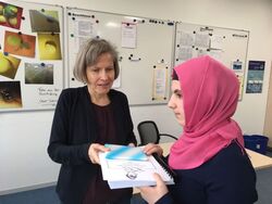 Eine unserer blinden Schülerinnen hat am Landeslesewettbewerb der Martin-Bertels-Schule teilgenommen und den ersten Platz erreicht. An der Technischen Universität in Dortmund wurde ihr von Frau Dr. Drolshage der Preis übergeben, die Mitglied der Jury gewesen ist und an der TU lehrt.