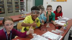 Begeisterte Schüler experimentieren mit Chempi
