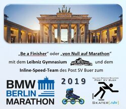 Eine Gruppe von Marathon‐Neulingen, Schüler(inne)n, gewissermaßen auf Skates fahren von Gelsenkirchen bis zur Ziellinie beim Marathon in Berlin, erleben hier die Faszination Marathon und entwickeln Spaß am Sport im Team! IHR könnt Teil dieser Gruppe werden, DU kannst dabei sein!