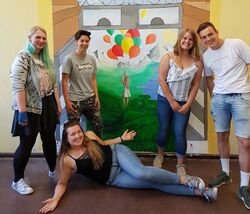 Endlich ist das Projekt „Daydream“, ein Wandbild im Raum 103, des GK-Kunst der Stufe Q1 vollendet worden. Das Motiv soll Träume und Lebensfreude in unserer Schule verkörpern. Bei der Umsetzung des Themas hatten die Schüler/innen viel Spaß und haben den Raum deutlich verschönert.