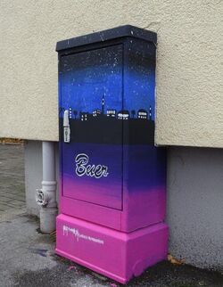 Im August und September haben Schüler der zehnten Jahrgangsstufe (EF) des Städtischen Leibniz-Gymnasiums fünf weitere Kabelverteilerschränke, auch besser bekannt als Stromkästen, in und rund um der Bueraner Innenstadt mit farbigen Motiven verschönert und damit echte Hingucker geschaffen.