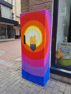 Im Mai und Juni haben Schüler*innen der neunten Jahrgangsstufe des Städtischen Leibniz-Gymnasiums acht weitere Kabelverteilerschränke, auch besser bekannt als Stromkästen, in und rund um der Bueraner Innenstadt mit farbigen Motiven verschönert und damit echte Hingucker geschaffen.