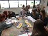 Selbst kreativ werden zum Thema konstruktive Kunst stand nach der Erläuterungen der Kuratorin als nächstes auf dem Plan. Das klappte sehr gut und machte sichtlich Spaß.