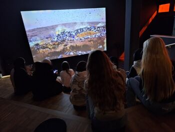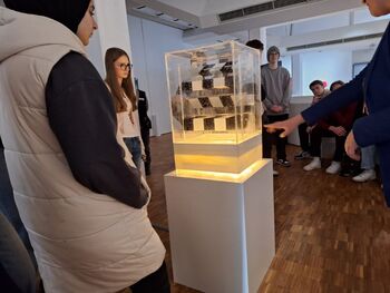 Frau Ella Katharina König, die Leiterin der Museumspädagogik des Kunstmuseums führte uns durch die neue Ausstellung. Diese zeigte sich ganz begeistert, dass die Schüler*innen ihrerseits mit Enthusiasmus dabei waren und freut sich schon über die kreativen und spannenden Ergebnisse.