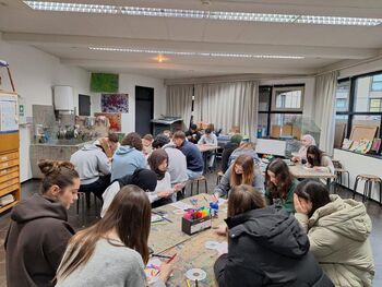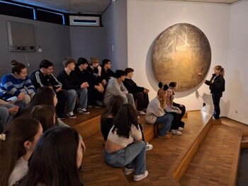 Frau Ella Katharina König, die Leiterin der Museumspädagogik des Kunstmuseums führte uns durch die Ausstellung. Diese zeigte sich ganz begeistert, dass die Schüler*innen ihrerseits mit Enthusiasmus dabei waren und freut sich schon über die kreativen und spannenden Ergebnisse.