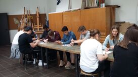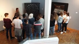 Die Schüler und Schülerrinnen aus fünf 9er Klassen haben mit Ihren Lehrerinnen Frau Potthoff, Frau Nyhus und Frau Pruß die Kinetische Sammlung des Kunstmuseums in der letzten Woche besucht. Sie haben schon vor Ort ein kleines Kunstwerk hergestellt und werden sich jetzt im Unterricht mit dem Thema Kinetik theoretisch und praktisch auseinandersetzen. Kinetische Kunst ist ein Objekt, welches sich bewegt, bewegt werden kann oder die Illusion von Bewegung erzeugt.