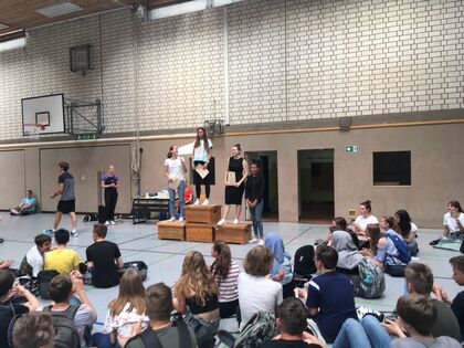 Am Dienstag fand das Badminton-Turnier der 9. Klassen statt. Zunächst mussten die Schülerinnen und Schüler in der Gruppenphase den jeweiligen Gruppensieger ermitteln, sodass sich am Ende des Turniers jeweils vier Mädchen bzw. vier Jungen für das Halbfinale qualifizieren konnten. Für das Halbfinale der Mädchen qualifizierten sich Öykü Mutluer, Carolina Iwan, Serenay Yigit und Johanna Student. Sie lieferten sich ein spannenden Wettkampf.