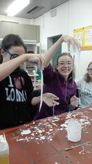 Zur Überbrückung der Wartezeit durften wir mit einer nicht-newtonschen Flüssigkeit (Wasser und Stärke) spielen.