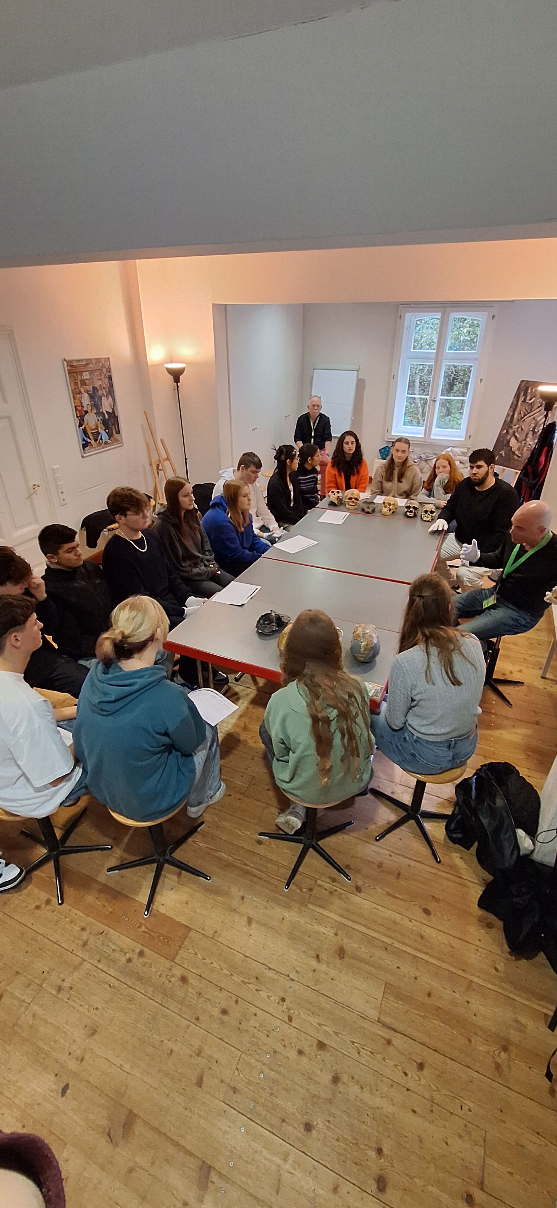 On October 27, 2023, the Q2 biology Leistungskurs had the opportunity to visit and explore the Neanderthal Museum in Düsseldorf. During our visit to the Neanderthal Museum in Düsseldorf, we had a fascinating experience exploring the rich history of human evolution. The guided tour provided a comprehensive understanding of the Neanderthals and their place in our evolutionary timeline. We learned about their physical characteristics, lifestyles, and the environments they inhabited. The workshop was a hands-on opportunity to engage with actual Neanderthal and further extinct hominid and ape-like genera skulls, allowing us to analyse their unique features and gain insights into the development of early humans. By exploring the transitional phases between various hominid species, including human ancestors and the great apes, it was a captivating and educational experience that deepened our appreciation for the study of human evolution, and which definitely enriched our knowledge of evolutionary phenomena.