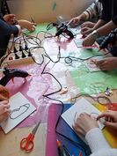 Im Ausstellungsgespräch wurde ein berühmtes Kunstwerk dieser Künstlerin erklärt (Lotusschatten, 2006). Anschließend durften die Schüler*innen an einem Workshop teilnehmen und weitere Installationen kennenlernen.