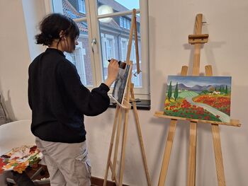 Des Weiteren ist das eine gute Gelegenheit für unsere Schulgemeinschaft, ihre eigenen Kunstwerke zu präsentieren. Es werden darüber hinaus auch Werke der beiden Künstler Helmut Kersting und Ralf Dreher ausgestellt.