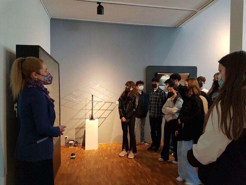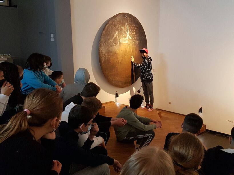 Frau Ella Katharina König, die Leiterin der Museumspädagogik des Kunstmuseums führte uns durch die Ausstellung. Diese zeigte sich ganz begeistert, dass die Schüler*innen ihrerseits mit Enthusiasmus dabei waren und freut sich schon über die kreativen und spannenden Ergebnisse.