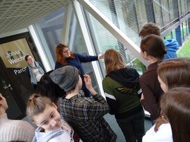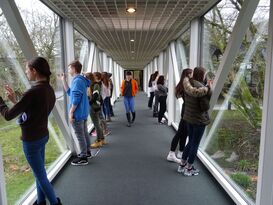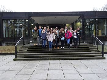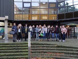 Anschauungsunterricht in zwei nahe gelegenen Museen bekamen jetzt 15 Schülerinnen und ein Schüler des Differenzierungskurses Kunst und Geschichte. Gemeinsam mit ihren Lehrerinnen, Frau Guindon und Frau Pruß, besuchten die Neuntklässler zunächst am 10. Januar das Kunstmuseum Gelsenkirchen. Am 29. Januar folgte dann eine Exkursion zum Quadrat in Bottrop. Beide Aktionen fanden statt im Rahmen des Vermittlungsprojektes RuhrKunstNachbarn, gefördert durch die Stiftung Mercator, das sich speziell an Jugendliche richtet.