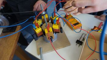 Mein Camp handelte von der E-Mobilität, also von elektrobetriebenen Fahrzeugen und dementsprechenden Entwicklungen und Bauteilen. Man hat einen gut ausgewogenen Einblick in die Theorie als auch Praxis bekommen. Am ersten Tag haben wir uns mit einem üblichen Verbrennungsmotor beschäftigt und durften diesen selbstständig auseinandernehmen. Die weiteren Tage handelten dann überwiegend vom Elektromotor, Batterien und dem Entwicklungsstand dieser. Hierbei wurde auch auf theoretische Grundlagen eingegangen, sodass jeder auf dem gleichen Stand war und alles gut Verfolgen konnte. Wir bauten eigene Elektromotoren, durften den solarangetriebenen Bluecruiser der Universität Bochum besichtigen und waren bei der Firma Vogelsang, welche Elektromotoren überholt und uns eine Führung organisierte.