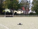 Die NaTeWe-Gruppe stimmte sich zunächst auf dem Sportplatz mit einem rasanten Drohnenflug unserer selbstgebauten Schuldrohne ein.