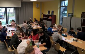 105 Schülerinnen und Schüler aus allen Jahrgangsstufen traten in 29 Teams an. 14 spannende Knobelaufgaben mussten im Team mit maximal 4 Teilnehmern in 60 Minuten gelöst werden; die Köpfe rauchten, angestrengte, ehrgeizige und zielstrebige Diskussionen wurden leise und intensiv an den Gruppentischen im MZR geführt.