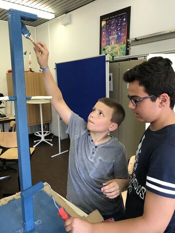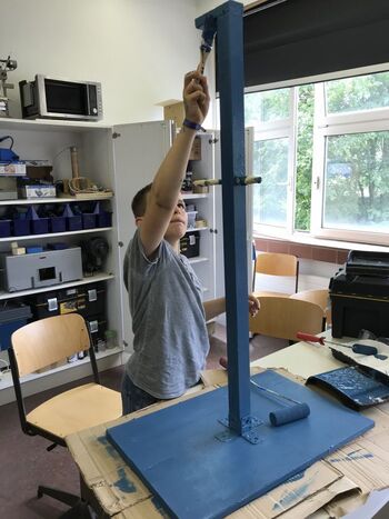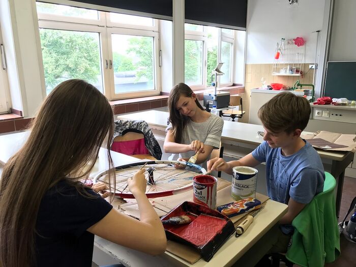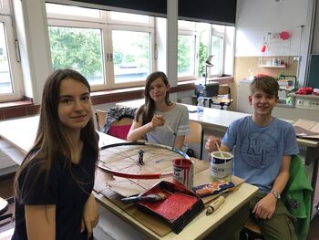 Unsere NaTeWe begeisterten Schülerinnen und Schüler der Klasse 7 bauen zur Zeit ein Glücksrad, dass von der Schulgemeine im Anschluss z.B. im Mathematik Unterricht in der Stochastik-Reihe oder auf Schulfesten genutzt werden kann. Akribisch wird der Aufbau des Stativs und die Einteilung der Felder geplant.