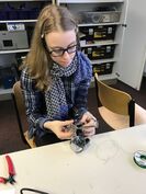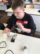 Nachdem wir alle Fertigkeiten im Umgang mit Metall bzw. Holz erworben haben, beginnen wir zu löten. Zunächst lernen wir die wichtigsten Bauteile der Elektronik kennen. Danach sind der Kreativität keine Grenzen mehr gesetzt. So haben wir uns von LED-Figuren zum Infinity Mirror & Zittertester "hochgelötet", ein Glücksrad und eine Drohne gebaut und selbst programmiert.