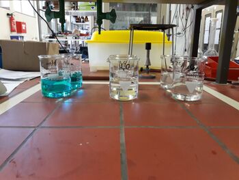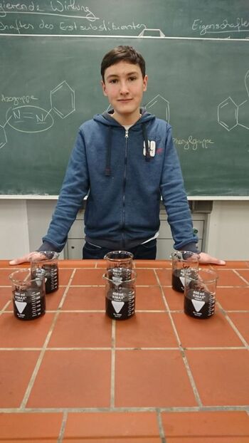 Frau Winkelmann: "Wir haben euch nun längere Zeit in unserer Chemiesammlung experimentieren lassen. Zahlreiche Nachmittage und Freistunden habt ihr nun selbstständig und ohne Anweisungen von uns an euren Versuchen geforscht. Aber worum geht es dabei überhaupt? Berichtet doch einmal der restlichen Schule von euren Erfahrungen und Erlebnissen."