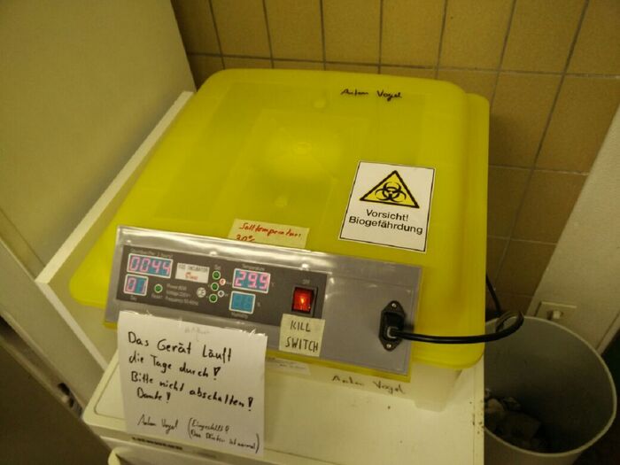 Florian: „Am meisten motiviert hat die Tatsache, dass wir u.a. auch den Laptop eines Lehrers untersuchen durften. Außerdem haben wir die Türklinken und die Kaffeemaschine der Physiker betrachtet. Entwarnung gab es bei der Kaffeemaschine. Am besorgniserregendsten war jedoch der Lehrerlaptop. Das Beste daran ist aber, dass wir den Lehrer sensibilisieren konnten, diesen endlich zu reinigen. Desinfektionsmittel konnten wir ihm geben.“