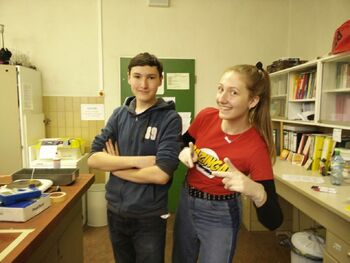 "Die Arbeit in der Sammlung ist entspannter als im Unterricht. Wir haben an Dechemax bzw. unseren Facharbeiten gearbeitet und hatten eine gewisse Freiheit, die man so im Unterricht nicht hat. Bei der Facharbeit konnten wir uns die Themen in Absprache mit dem Lehrer selbst aussuchen und so Dinge erforschen, die uns persönlich interessierten. Durch das tägliche Arbeiten in der Sammlung entwickelten wir eine Art von Routine, weil wir mehr Zeit haben und uns frei bewegen können. Wir fühlen uns in der Chemie gut aufgehoben, auch weil uns die Lehrerinnen erlauben in der Sammlung, wo wir eigentlich sonst nicht hineindürfen, so frei zu experimentieren."