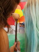 Endlich ist das Projekt „Daydream“, ein Wandbild im Raum 103, des GK-Kunst der Stufe Q1 vollendet worden. Das Motiv soll Träume und Lebensfreude in unserer Schule verkörpern. Bei der Umsetzung des Themas hatten die Schüler/innen viel Spaß und haben den Raum deutlich verschönert.