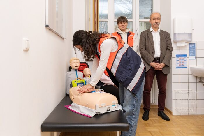 Dank der neuen HLW-Puppen und des Übungs-Defibrillators können auch die Schulsanitäter regelmäßig weitergebildet werden, um ihr Wissen und ihre Fähigkeiten stetig zu verbessern.